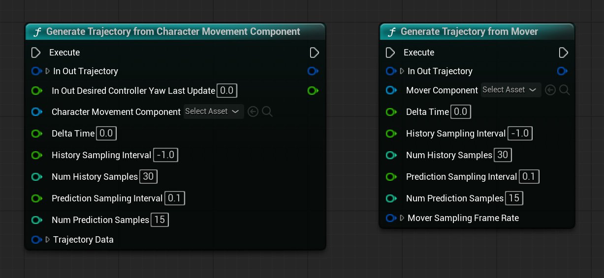 A representation of where the character is moving, including the expected future path. Motion Matching uses trajectory data to choose animations that match movement intent, not just the current pose.